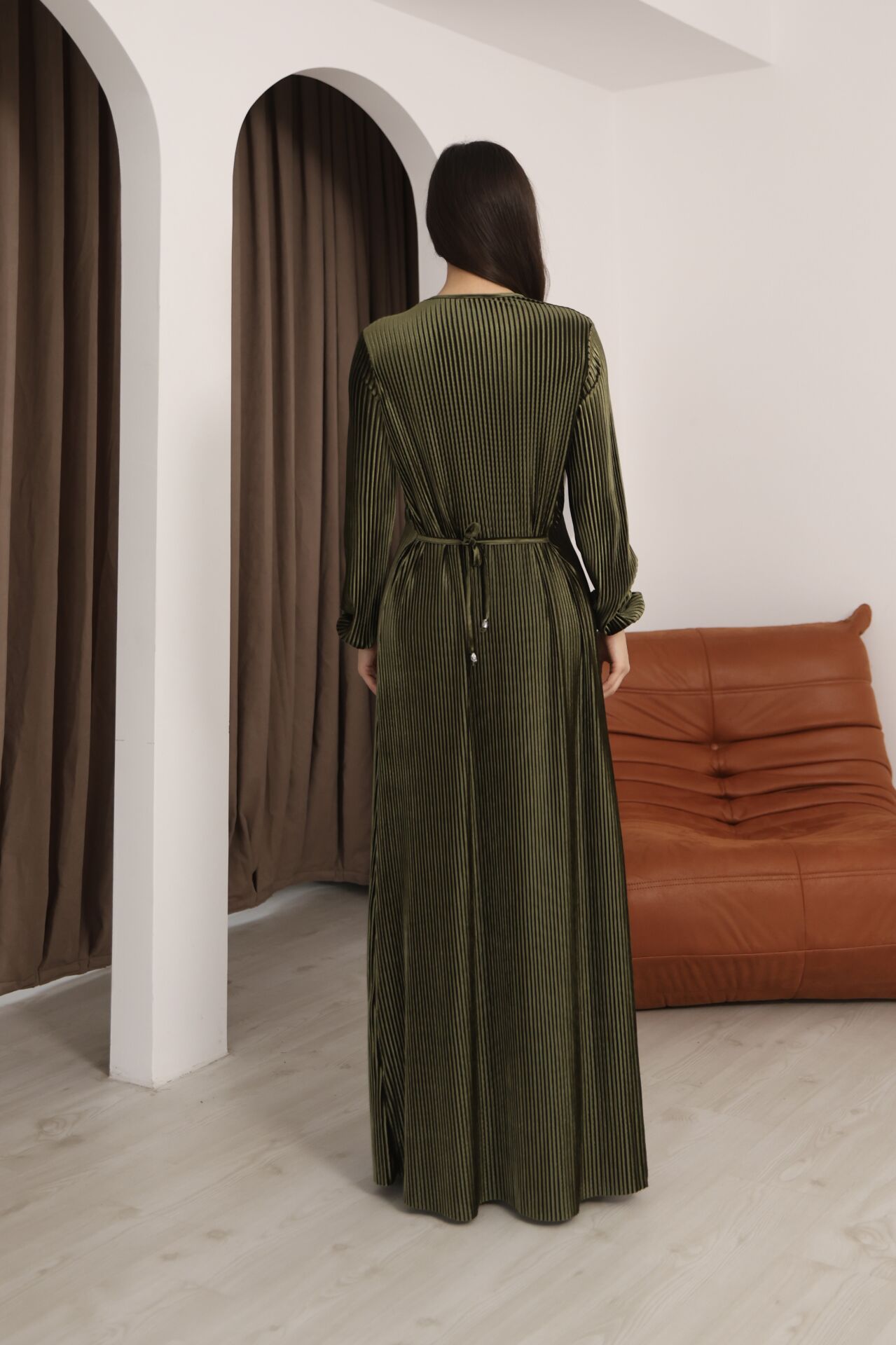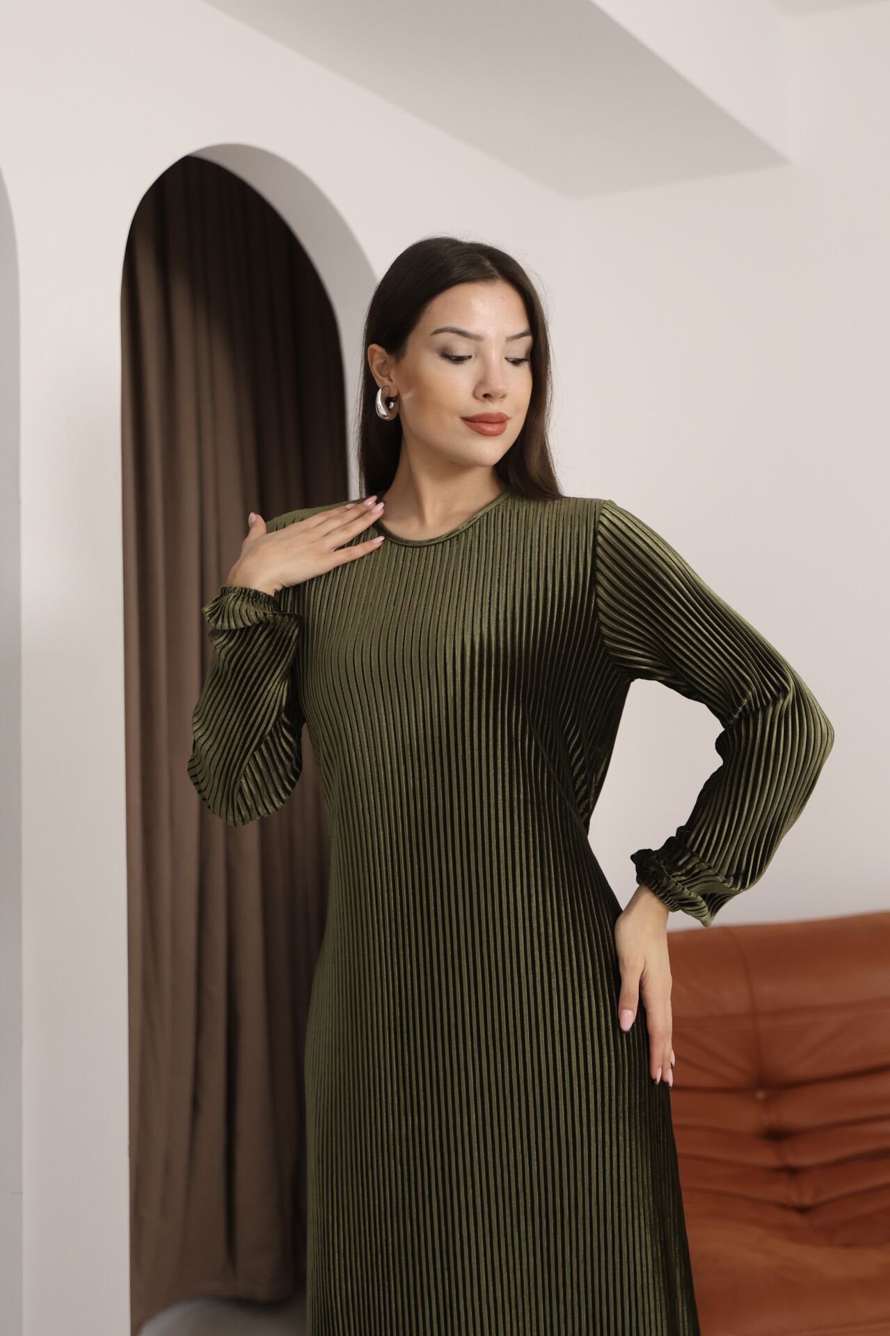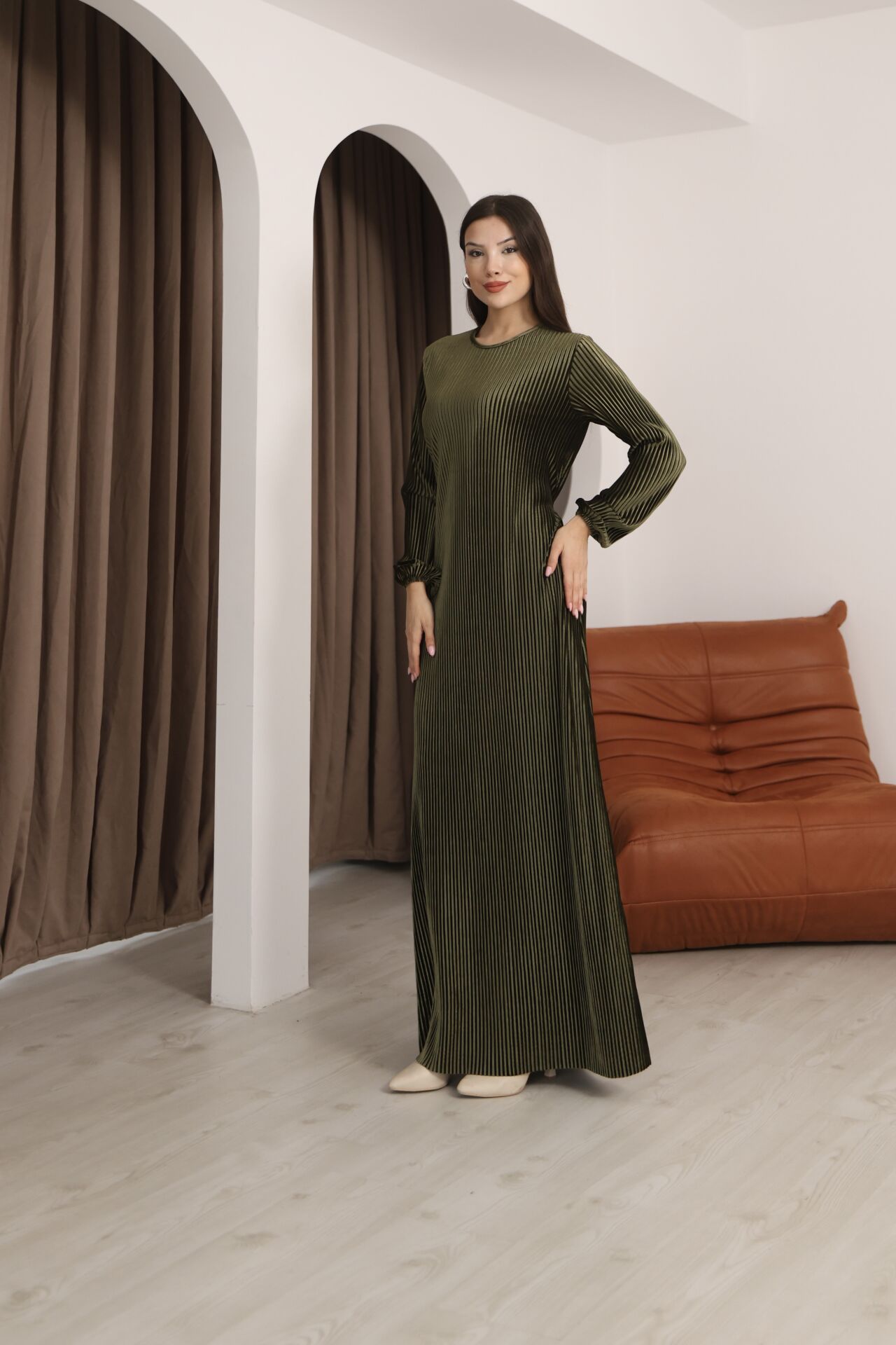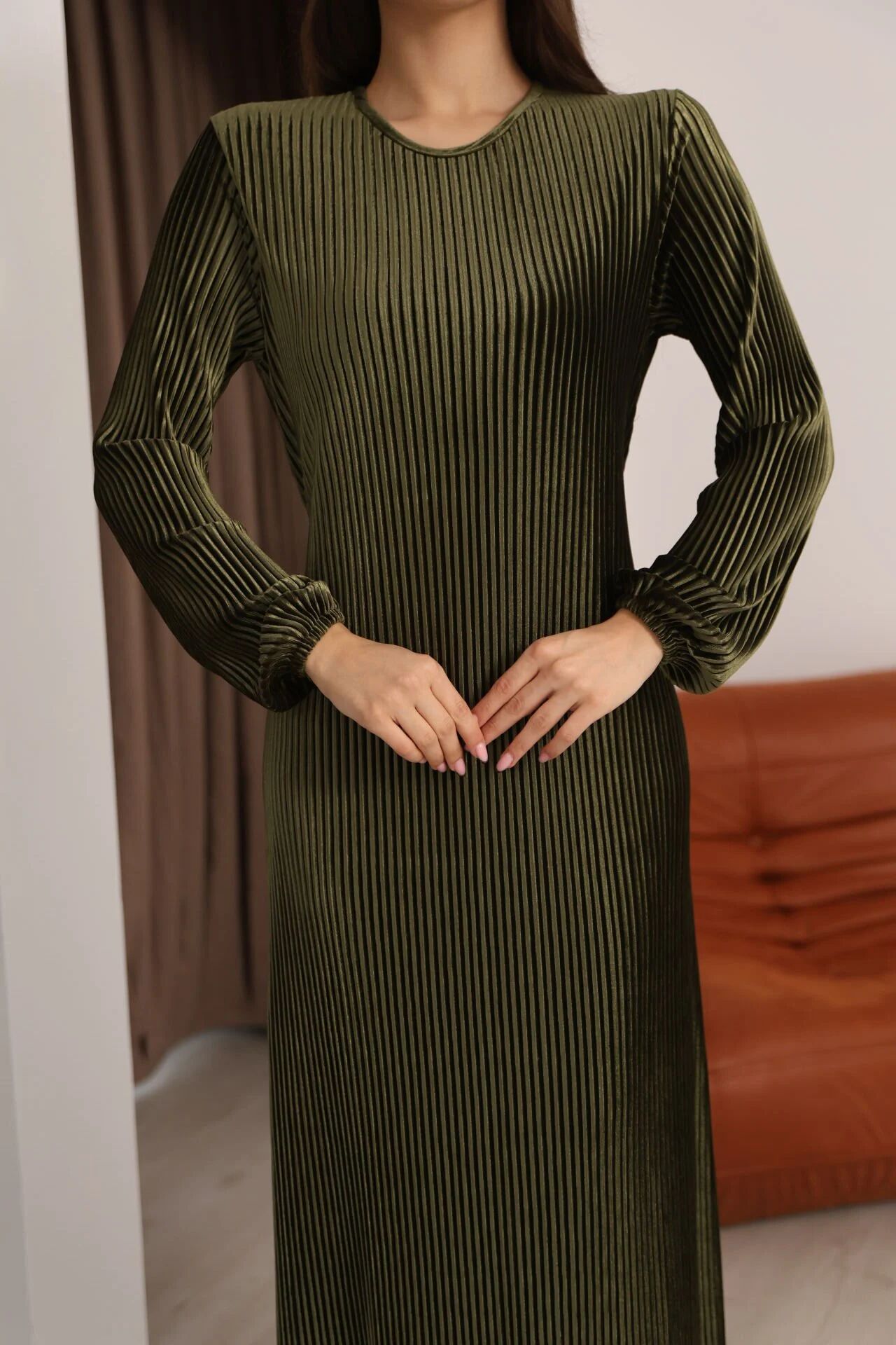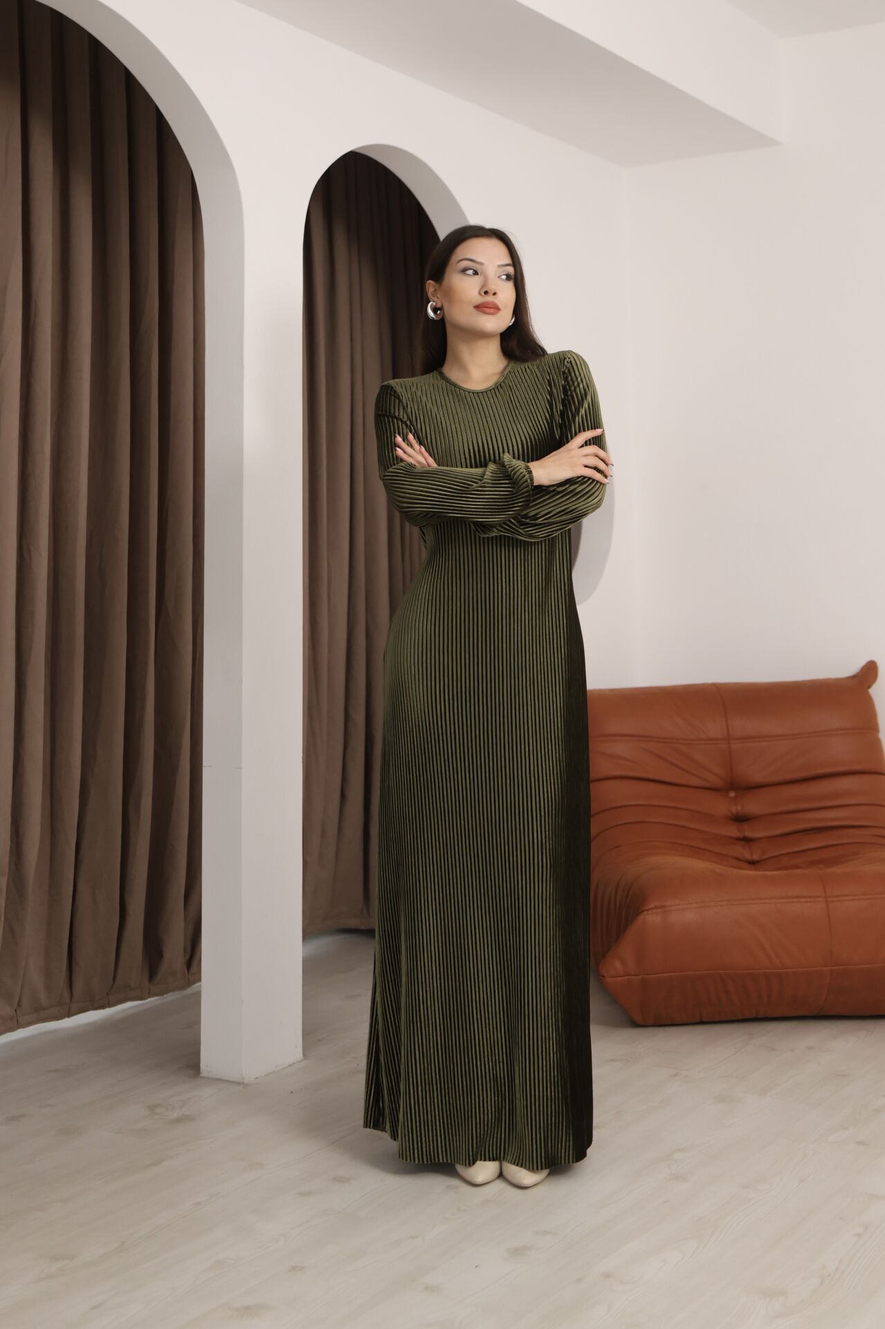 Das plissierte Kleid passt sich dank seiner eleganten Details und des fließenden Schnitts jedem Anlass an. Der lange Schnitt und das stilvolle Design bieten sowohl Komfort als auch Eleganz. Ob im Alltag oder zu besonderen Anlässen – dieses hochwertige Kleid wird schnell zu einem unverzichtbaren Bestandteil Ihrer Garderobe.