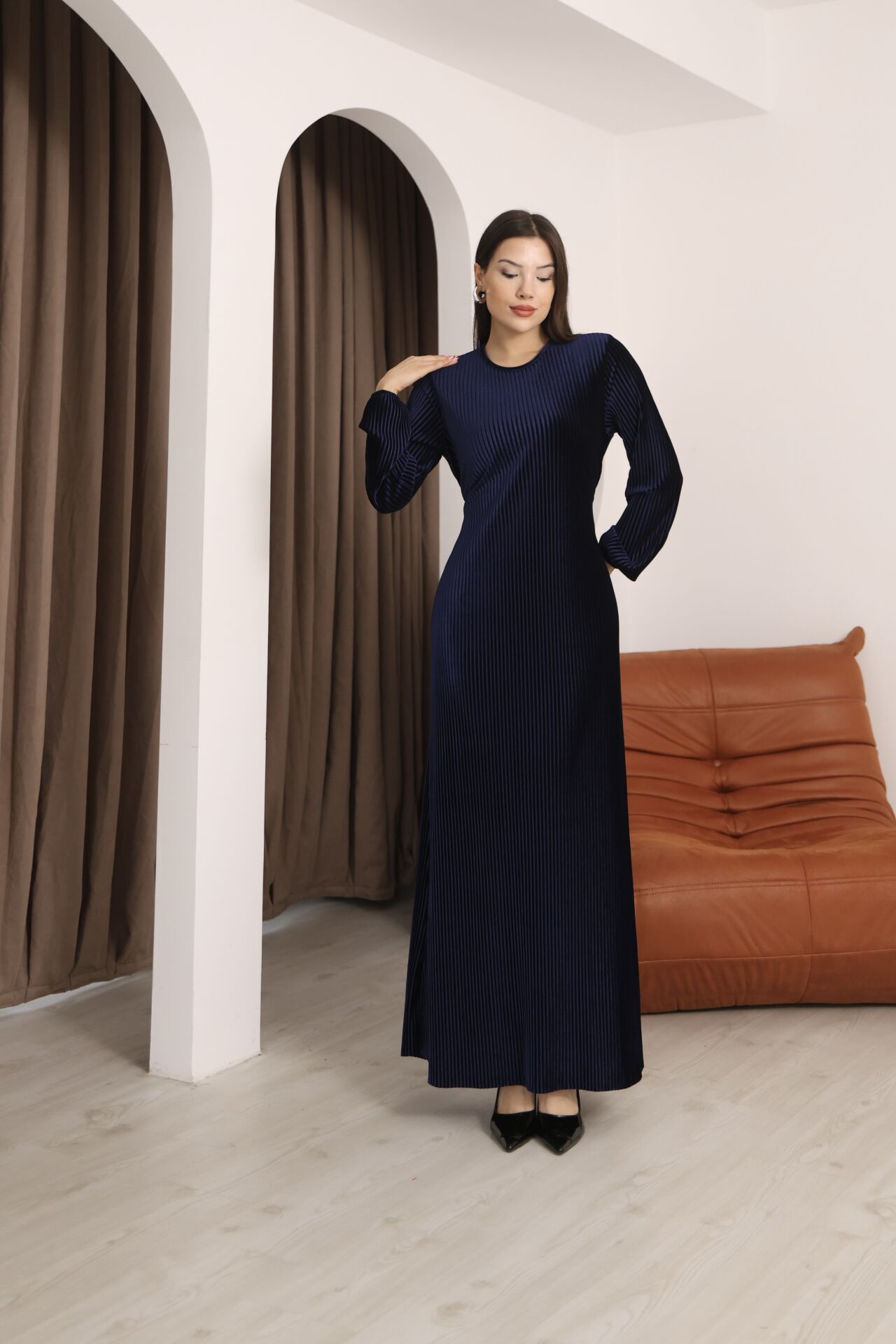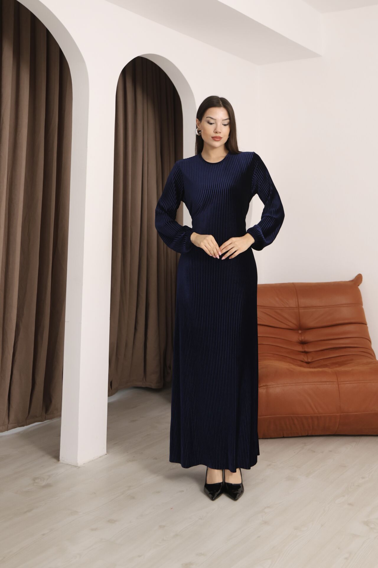 - Pileli tasarımı ile hareket özgürlüğü sunan ve şık bir görünüm kazandıran MULTİ PLİSE ELBİSE, günlük kullanım için idealdir.