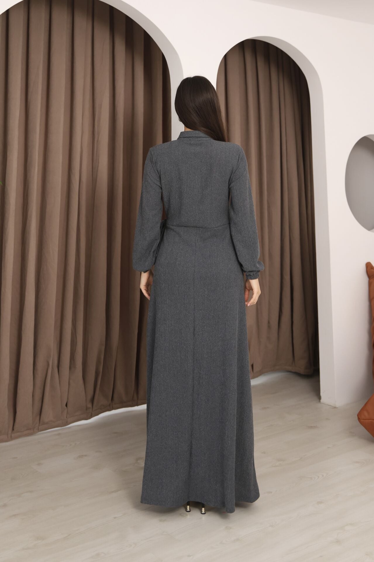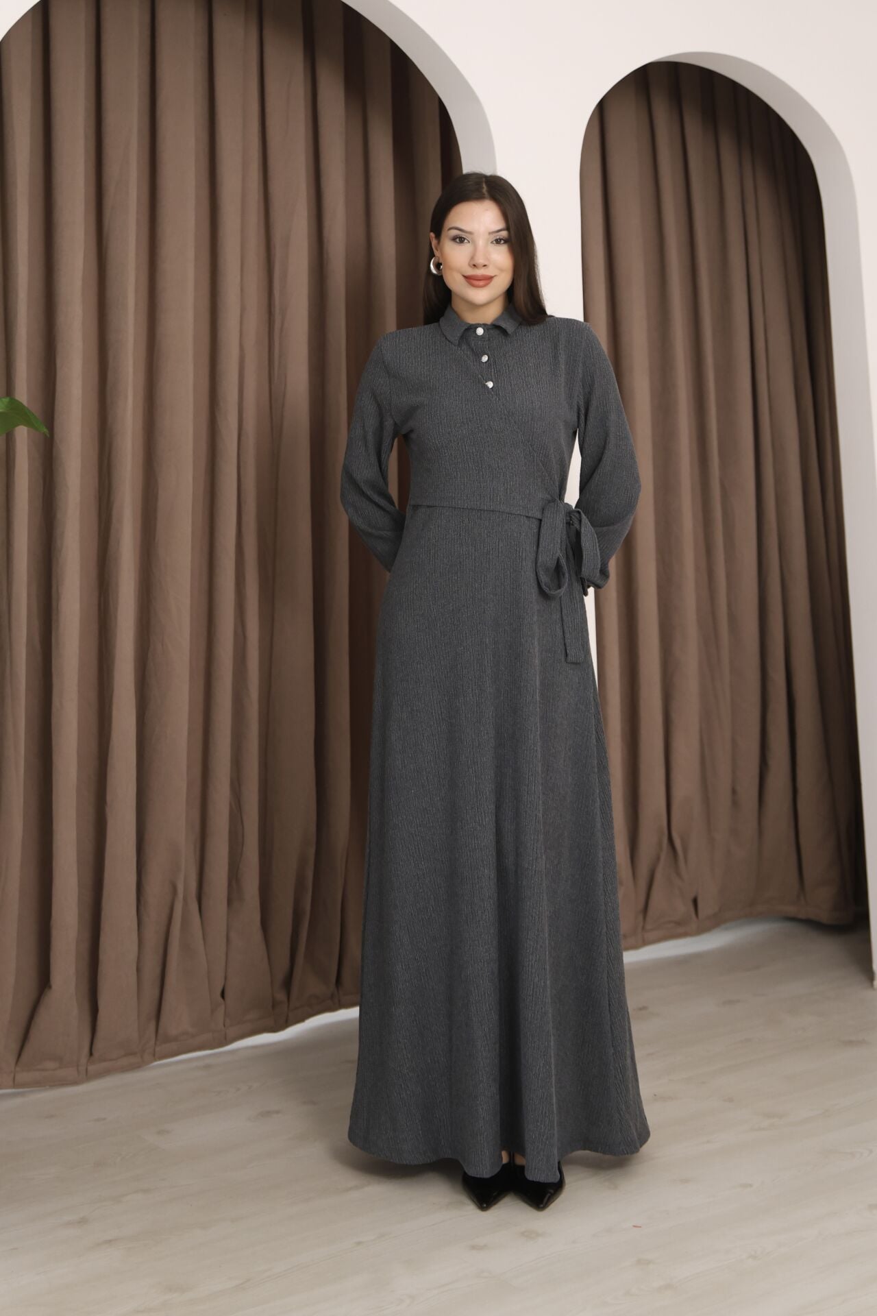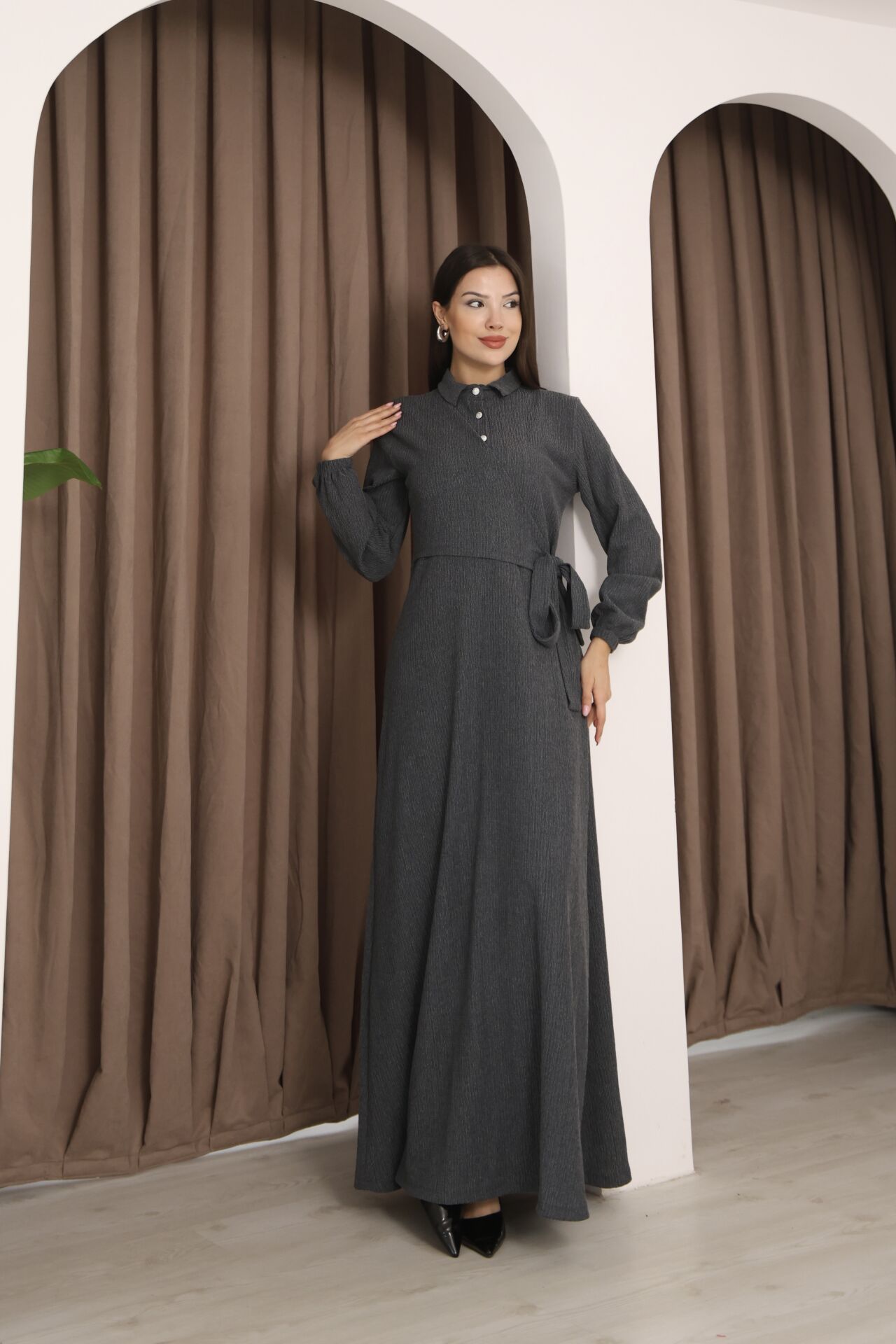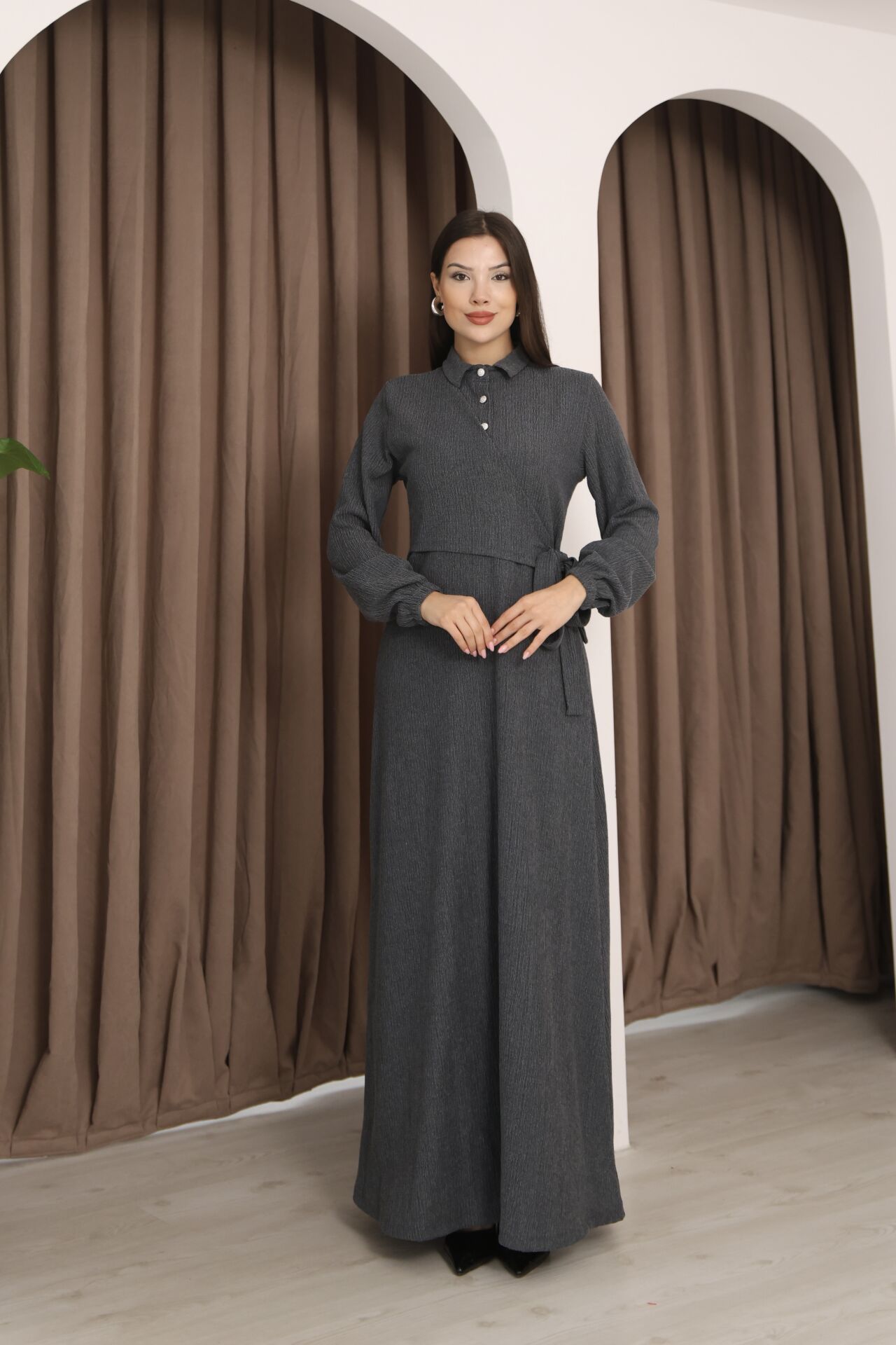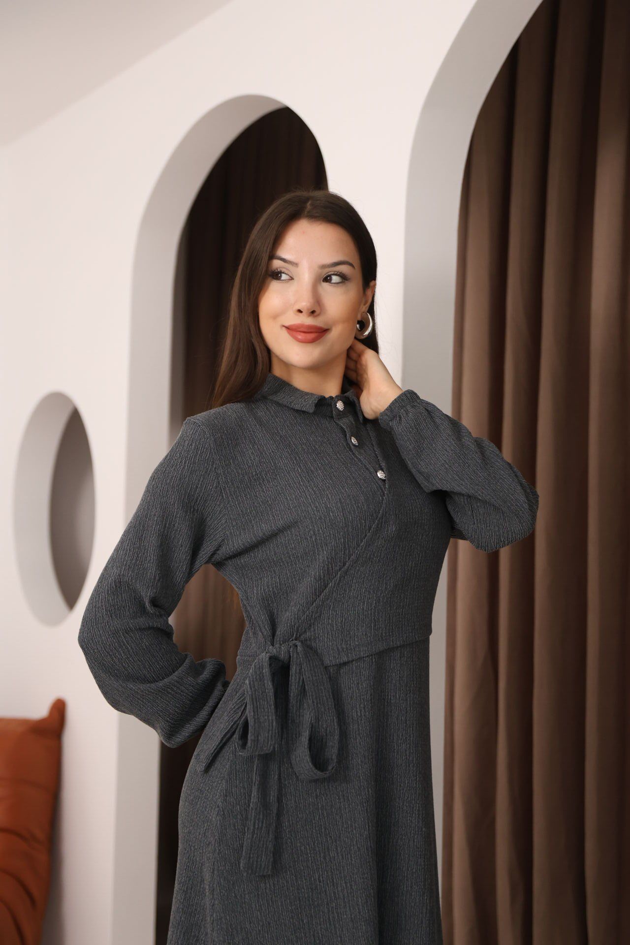- Klasik ortamlarda rahatlıkla tercih edilebilecek gömlek elbise silueti.