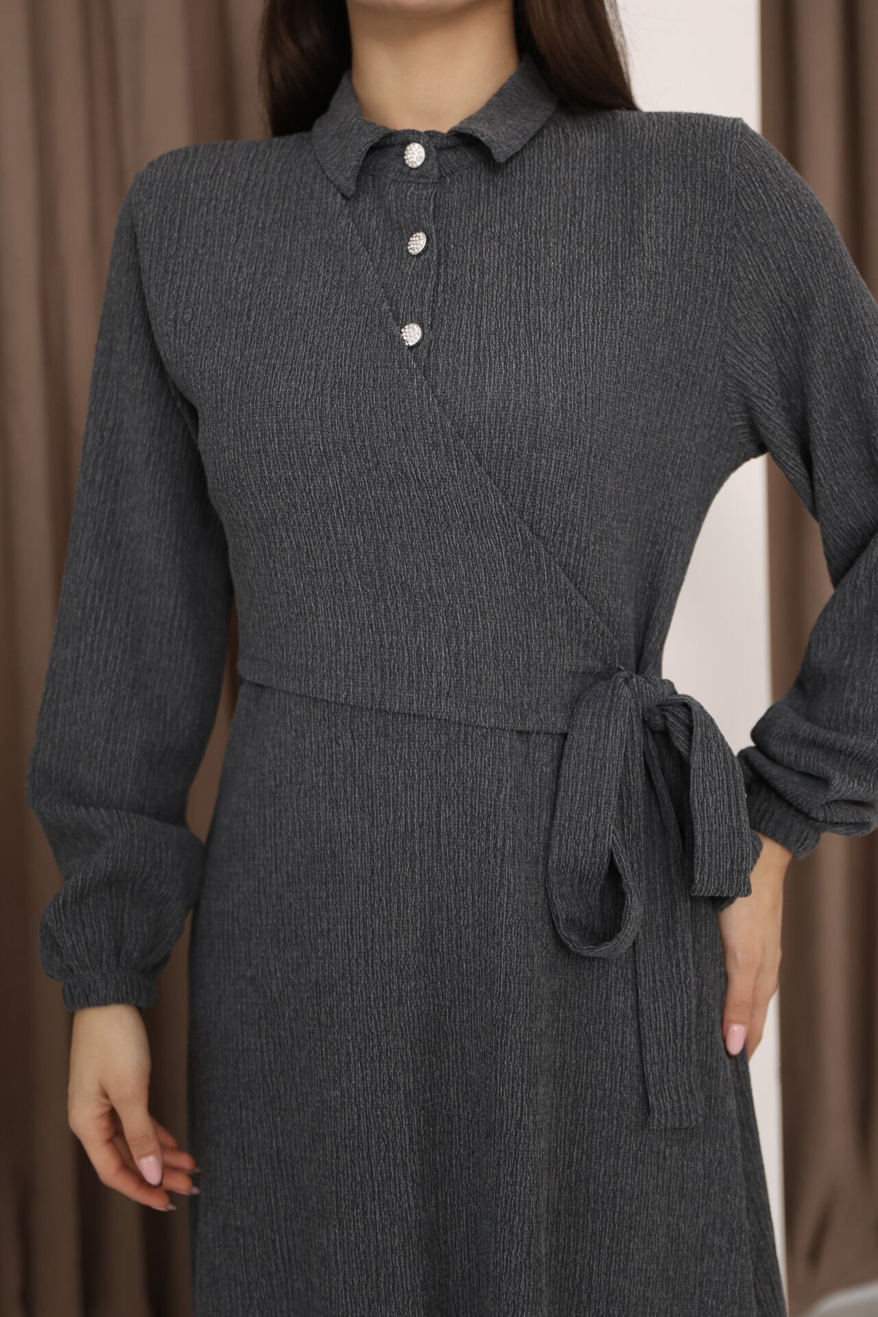 Poliviskon Önü Düğmeli Elbise